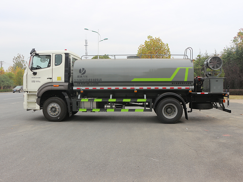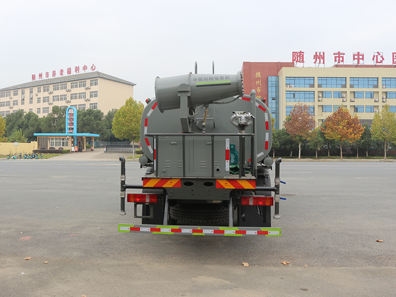 标准配置洒水车主要装备有:前冲(冲洗公路路面)、后洒(公路路面养护)、侧喷、高位侧花洒(路边绿化带优化);后工作平台高压水炮,可调节成柱状,射程≥28m;也可调节成雾状,射程≥30米,水泵自吸高度:≤7m,洒水宽度:≥15m。侧防护网,自流阀,消防接头。洒水车水泵为常压水泵,功能可以抽水、排水。另外根据用户要求,可加消防泵、喷雾机、农药卷盘、农药柱塞泵。罐内可以做防腐防锈、电磁阀气动阀自动放水等****,以满足不同用户需求。
