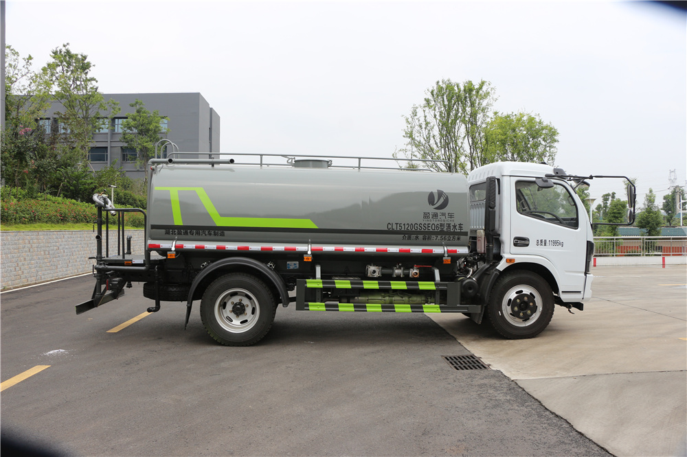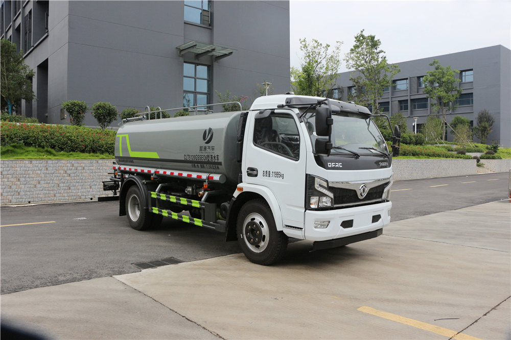 专用功能配置:罐体实际容积约为9.35立方米,采用武钢优质碳钢板卷压成型。配备专用洒水泵,自吸自排,前喷后洒、侧喷、后工作平台及洒水高压炮。洒水泵自吸高度为6米左右,整车洒水宽度14米左右,后工作平台水炮可调成:直冲状、大雨、中雨、小雨、毛毛雨,有效射程≥28米,整车带接头、水位计,自流阀。后工作平台主管道有一个一寸的浇花接口,附送2根3米水管,1个爬梯,两侧及后保险杠。