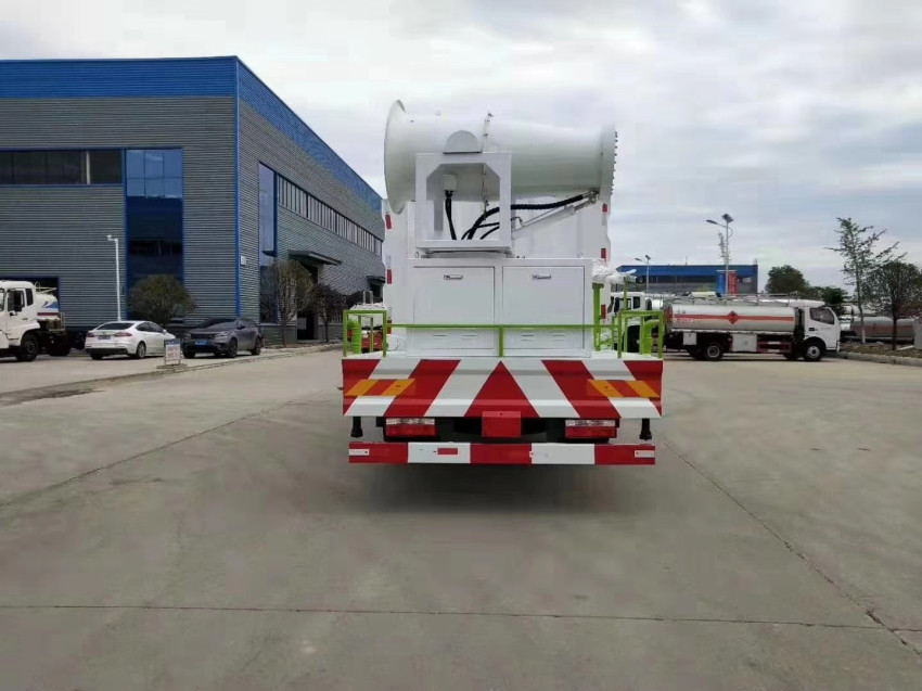 4、紧急时当消防车用。洒水车上自带高压水炮,射程可达40-50米,因此在紧急情况下可以用于灭火,其自带装配的消防接口,也为其取水提供了更大的便利。