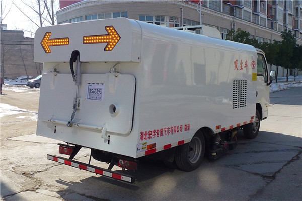 5.垃圾箱容积1.5m3,内部加装进口防水材料滤筒,垃圾分类存放,能有效地对树叶,石子,灰尘进行粗细处理,厢体采用倾翻卸料。