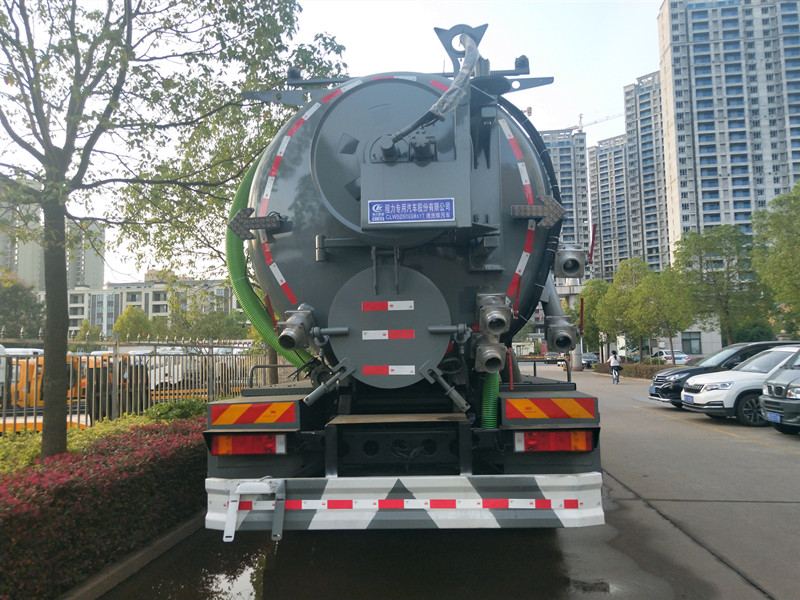 吸污车专用部分由取力器、传动轴、真空吸污泵、压力罐体、液压部分,管网系统、真空压力表、视粪窗、洗手装置等组成,随车配置大功率真空吸污泵和优质液压系统,罐体封头一次压铸成型、罐体可后开、双顶自卸。罐内污物可通过后盖直接倾倒,具有真空度高(比吸粪车的吸力更大)、吨位大、效率高、用途更广泛的特点。