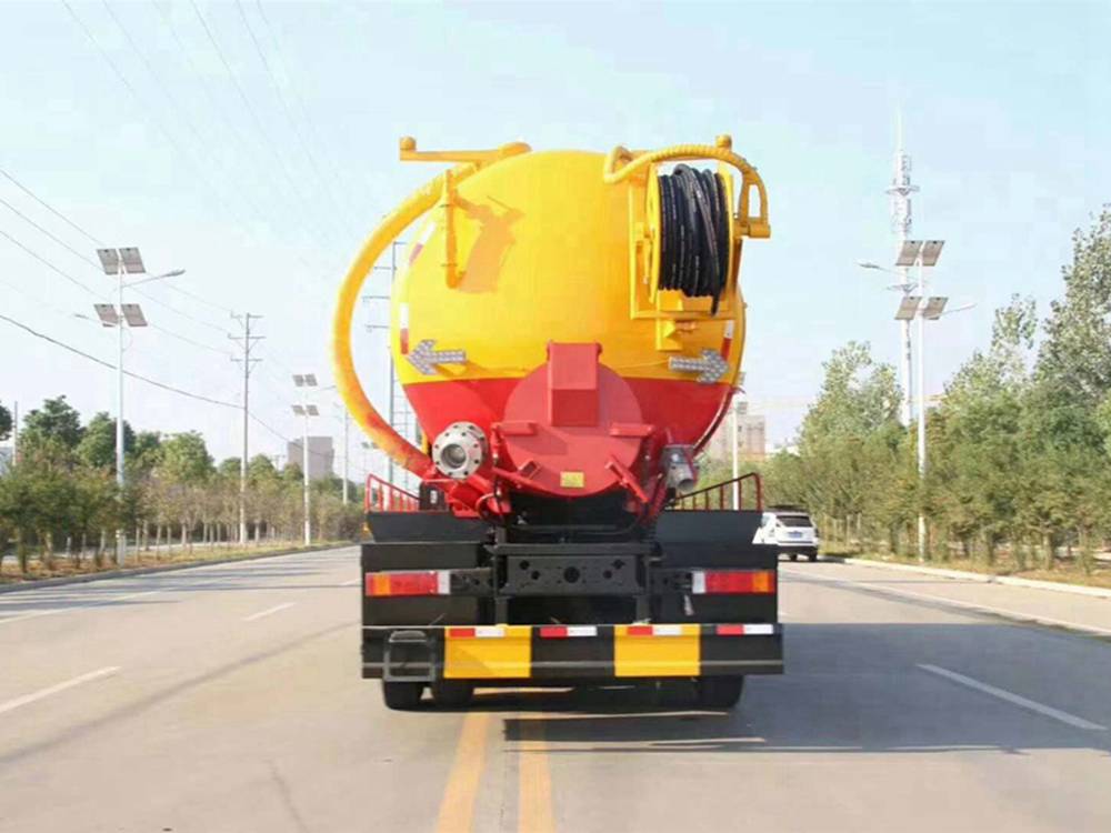 清洗装置:配天津通洁300升高压泵, 60米PVC双层高压管22通径高压管,10个高压喷头,两个水泥盖,顶部100的互通,水污互通用100的球阀,水罐3寸球阀安在罐体最底部.水仓污仓罐体内喷防锈,后封头600的液压口,一个6寸自流,一个4寸的进料口,一个4寸的排污口,侧面一个6寸的球阀偷排。后盖加装活动可拆式卷盘壹套,右后侧一套卷盘,罐体采用8个厚钢板制作,后盖上带一个600液压口排污,300侧边自流口。