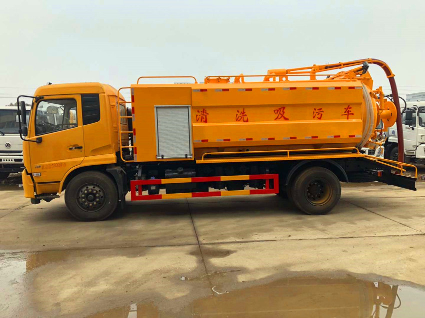 清洗罐6立方,污水罐8立方,配80米直径19清洗管,吸污车配10个不同规格的高压喷头,尾部左侧后置式清洗卷盘,吸污部分安排伟业牌大功率10T真空吸污泵,带10米吸污管一根,罐体右后侧安装150排污阀,侧抽上料口采用直径115加厚型无缝管,(清水罐和污罐)顶部安装三爪干灰盖,加大工具箱,水污互通。