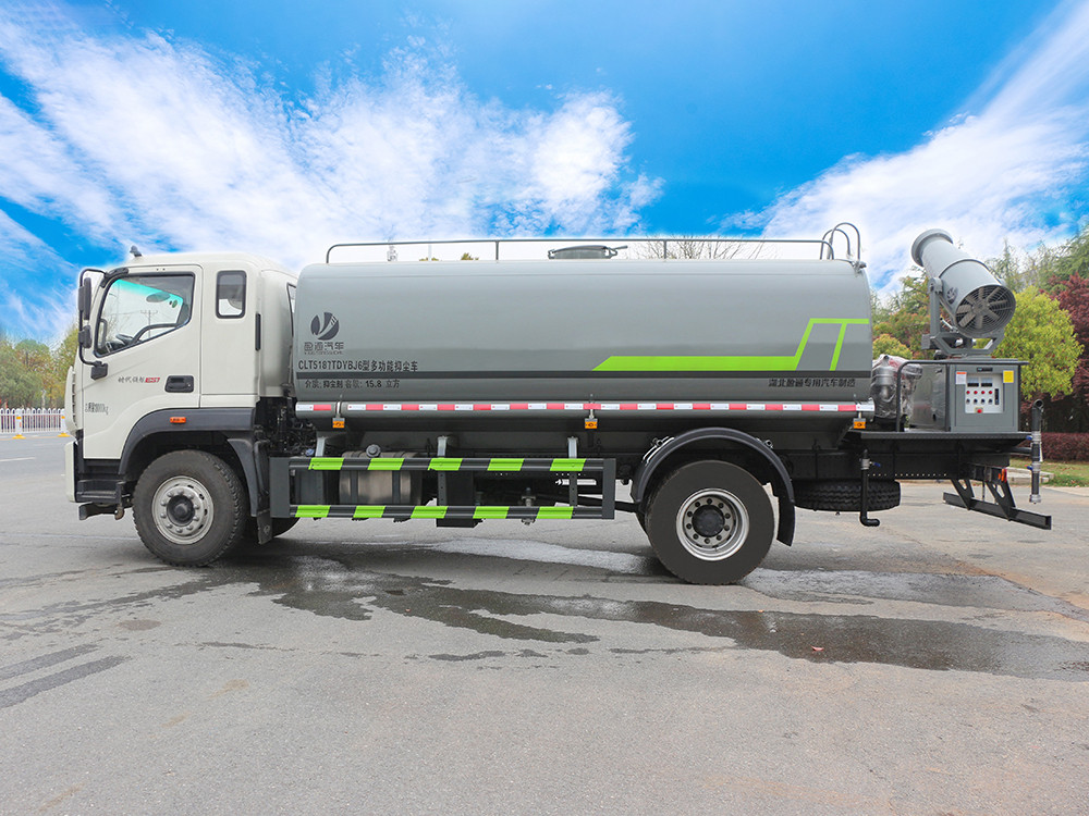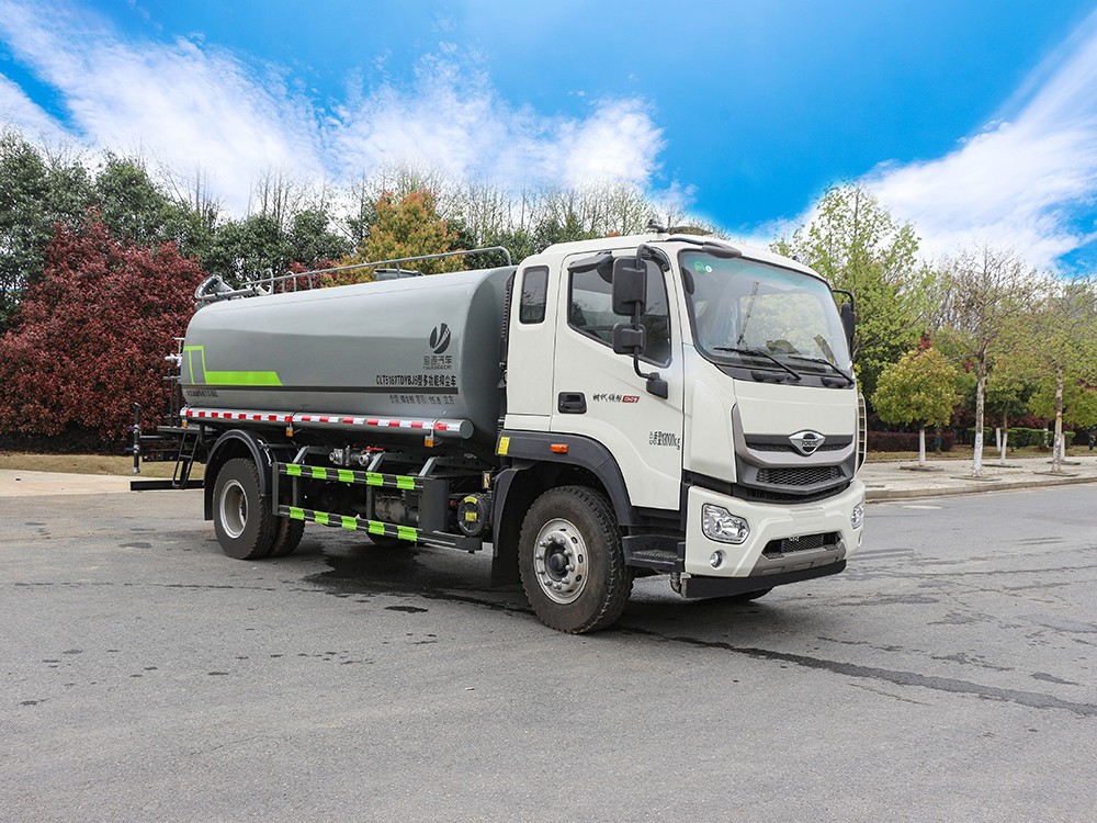 二.产品配置 1.底盘配置: 发动机玉柴 245 马力(六缸),法士特 8 档,3950 轴距,10.00 钢丝胎,前 4.5T/后 10T,中控锁,电动玻璃,助力,空调,行车记录 仪2.上装配置: 1、罐体约为 12 方,可加装 30-40 型雾炮 2、边灯带电,罐体尾部上方标配 2 个红色示宽灯, 3、标配前喷为鸭嘴直冲,标配后冲,用户可根据自己的需求,来调 整对冲位置。 4、花纹防滑平台,炮筒后盖为定制型螺栓卡扣, 5、前喷、后冲、后洒、侧喷,绿化高炮开关球阀均采用 50 大通经 不锈钢球阀, 6、新式轴承式水炮,更加耐用, 7、60-90 型水泵, 8、防腐法兰垫片, 9、铝制后洒,不易炸开 10、罐体自动焊(美国林肯焊机及电源),拼板自动焊接,封头环 缝焊接,无气孔,焊缝美观。 11、侧护网、后保险杠、均为螺栓连接,方便拆卸,维修方便。 12、塑料挡泥板,替代铁挡泥板,更加轻便,用螺栓连接,方便拆 卸。 13、前部、后部主管连接处为 6 孔圆法兰,不易冲垫