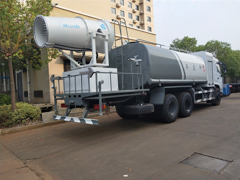 专用装置为抑尘雾炮,用于城市抑尘.整车长/轴距/后悬对应关系为(mm):10640/4350+1350/3500;10640/4750+1350/3100;10640/5400+1350/2450;11880/5700+1350/3390;11880/5900+1350/3190;防护材料:Q235A碳钢,连接方式:左右侧面采用焊接连接,后下部防护采用螺栓连接,后部防护断面尺寸(mm):120×50,后部防护离地高度(mm):500.ABS型号/生成厂家:3631010-C2000/东科克诺尔商用车制动系统(十堰)有限公司;随底盘选装驾驶室。选装雾炮。选装后部喷杆抑尘装置。 |