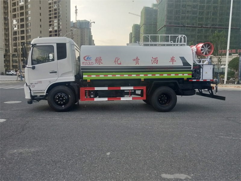 配备大功率专用洒水泵,泵可自吸自排,安装过滤网,带消防接口,可通过消防栓进水,带自流阀,随车选装20米绿化卷盘,可喷洒农药,罐体金属漆。罐体有椭圆和方圆罐两种,可根据用户的要求定做