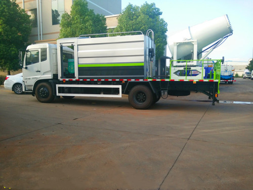 多功能抑尘车又称为雾炮车、多功能打药洒水车、园林绿化喷药车等名称,洒水车加装喷雾机,洒水车又称为绿化喷洒车、水罐车、由汽车底盘、进出水系统和罐体构成。适合于各种路面冲洗,树木、绿化带、草坪绿化,道路、厂矿企业施工建设,高空建筑冲洗。具有洒水、压尘、高低位喷洒,农药喷洒、护栏冲洗等功能