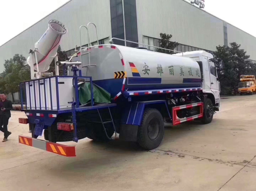 洒水车吸程≧7米,洒水宽度≧14-16米,射程≧25-40米,引水时间<5min,流量60m3/h。前冲(喷)、后洒、带侧喷(花洒)、带后工作平台、平台上安装绿化洒水高炮(炮喷射形状可调节:直冲、大雨、中雨、毛毛雨、雾状、可连续调节,360°旋转),配消防接口,自流阀,滤网,带自吸自排功能。配备大功率专用洒水泵,泵可自吸自排,安装过滤网,带消防接口,可通过消防栓进水,带自流阀,此车尾部加装大功率农药喷洒炮,