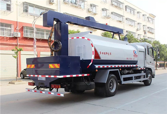 罐体为10立方圆形罐,罐体内部做防腐,前冲、后洒、侧喷、高炮,抑尘喷洒杆(带旋转伸缩功能)。喷洒杆离地3.5-4.5米 ,后部平台带8KW副发电机组,罐体内部加两个1.5KW电动马达(带搅拌功能)罐体喷漆上白下蓝,平台和喷洒杆蓝色。遥控操作喷洒杆上下左右旋转,平台较上一台车左右加宽20CM,电控箱安装在后部平台。