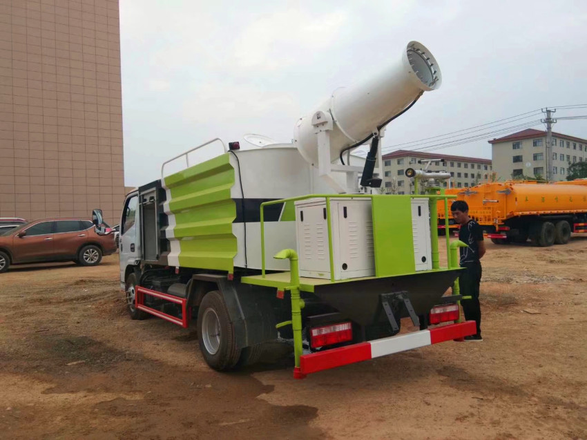 抑尘车吸程≧7米,洒水宽度≧14-16米,射程≧25-40米,引水时间<5min,流量60m3/h。前冲(喷)、后洒、带侧喷(花洒)、带后工作平台、平台上安装绿化洒水高炮(炮喷射形状可调节:直冲、大雨、中雨、毛毛雨、雾状、可连续调节,360°旋转),配消防接口,自流阀,滤网,带自吸自排功能。配备大功率专用洒水泵,泵可自吸自排,安装过滤网,带消防接口,可通过消防栓进水,带自流阀,此车尾部加装大功率农药喷洒炮,喷洒状态雾状,有效射程15-45米,外部平台带独立的机组。