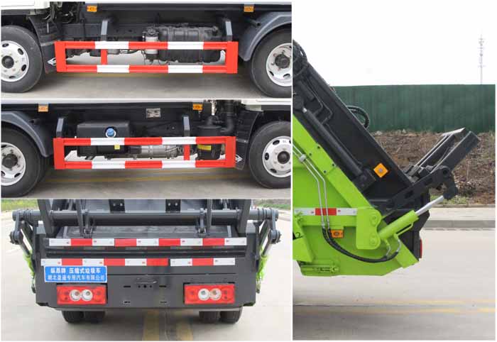 备注 | 福田小卡3方压缩垃圾车该车专用装置为垃圾箱体及液压系统装置,主要用于垃圾的收集,转运作业.侧防护材料为:Q235碳钢,连接方式为:螺栓连接,后部防护为专用装置代替,后部防护离地高度(mm):410.选装无上料装置时无后伸,选装密封斗装置,翻桶装置,摆臂装时,后伸280mm;选装翻斗装置时,后伸380mm.ABS系统控制方式为4S/4M,气刹:ABS型号为CM4XL-4S/4M,生产厂家为广州瑞立科密汽车电子股份有限公司.液刹:ABS型号为CM4YL,生产厂家为广州瑞立科密汽车电子股份有限公司.发动机/油耗申报值为(L/100km):Q23-115E60/11.12,Q23-115C60/11.31.该车选装直接供电式ETC车载装置.该车型整备质量包含随车工具,不含备胎.货箱质量为1750kg,货箱材质为T700,侧板和顶板厚度为2.5mm;底板厚度为3mm.选装货箱侧面样式.后部作业灯具仅在车辆作业时开启,行驶过程中不可开启.整车长度/后悬/后伸对应关系(mm)为:5995/1735/280,5995/1635/380,5830/1850/0.随底盘选装新前格栅及新logo,选装新前围.选装油箱电瓶安装位置. | ||