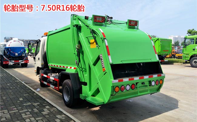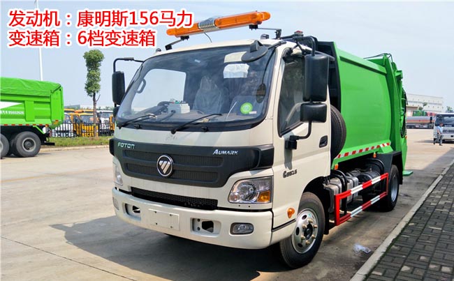 福田欧马可压缩式垃圾车,2.05米宽驾驶室、单排前翻、康明斯154马力,6档变速箱、轴距3.8米,6吨后桥、7.50R16钢丝胎、动力转向、空调、定速巡航、离合助力、断气刹、ABS。