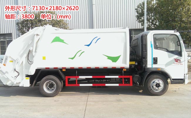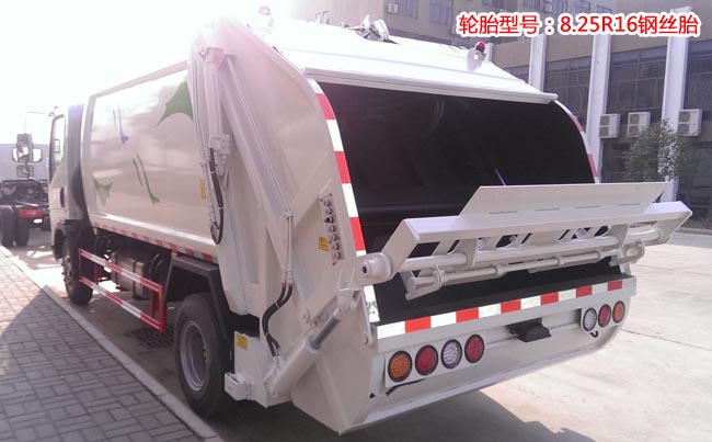 重汽豪沃压缩式垃圾车,重汽豪沃底盘,发动机重汽140马力,6档变速箱,轴距3.8米,8.25R16钢丝胎,带ABS,空调,方向助力。