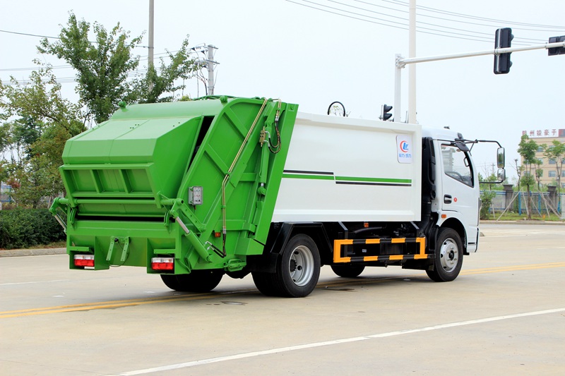 新款平面弧形厢体,厢体材料为武钢优质碳钢,有效压缩容积8立方,PLC一键操作控制,手电一体操作模式,两侧双电控,带驾驶室内操作,底板支撑加强,双向压缩,开放式易清洁污水箱。压缩式垃圾车采用机电液一体化技术,借助机、电、液联合自动控制系统、电脑控制、手动操作系统,通过填装器和推铲等专用装置,实现垃圾倒入、压碎或压扁、强力装填,把垃圾挤入车厢并压实和推卸,污水全部进入污水收集箱,解决了垃圾运输过程中的二次污染的问题。压缩式垃圾车具有自动反复压缩以及蠕动压缩功能,压缩比高、密封性好、装载量大﹑操作方便、环保性好﹑整车利用功率高等优点。作业自动化,垃圾收集方式简便、高效。