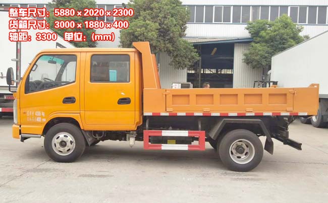 箱体容积5立方米,货箱尺寸长3米,款1.88米,高0.4米,双缸液压举升,后盖手动开启。