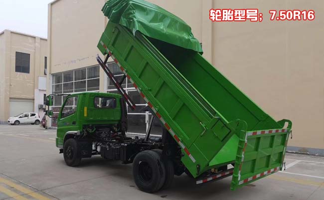 整车容积5~6立方米,自卸式箱体,箱体内部尺寸:3950×1870×800(mm),采用4毫米厚钢板制作,箱顶带液压盖板,可向两边展开折叠,箱底双缸液压自卸,手动尾门。